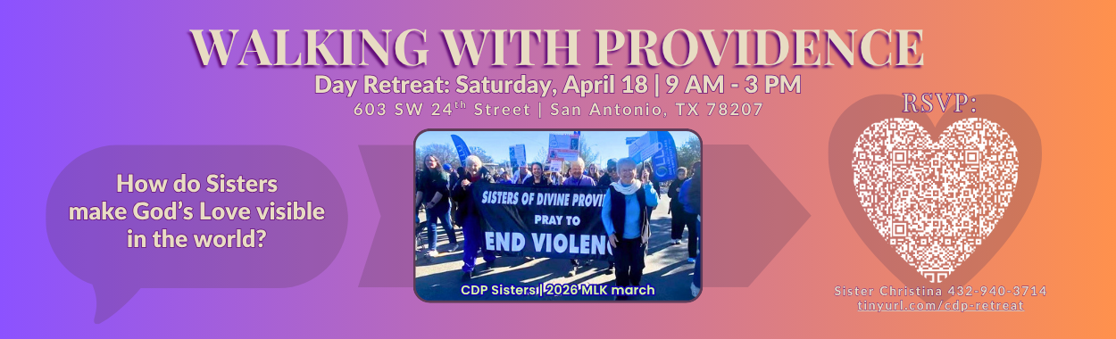 The Congregation of Divine Providence was founded in Alsace-Lorraine, France in 1762. We are a community of women religious within the Catholic Church dedicating our lives to furthering the mission of Jesus in the world. The Congregation celebrates over 150 years of service in Texas and the southwestern United States this year.