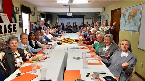 CDP General Councilors, Sisters Anita Brenek, Lourdes Leal and Mary Bordelon visited the ARISE SUPPORT CENTER in Alamo, Texas with other LCWR Region 12 members. The Sisters were meeting in San Juan, Texas in the Rio Grande Valley and heard from several agencies that work with immigrants and in the colonias. Staff from ARISE explained how the center works with the immigrant community, especially women, children, and youth. Those in this picture made the fun gesture that focuses on the sunrise and hope for the immigrant community.