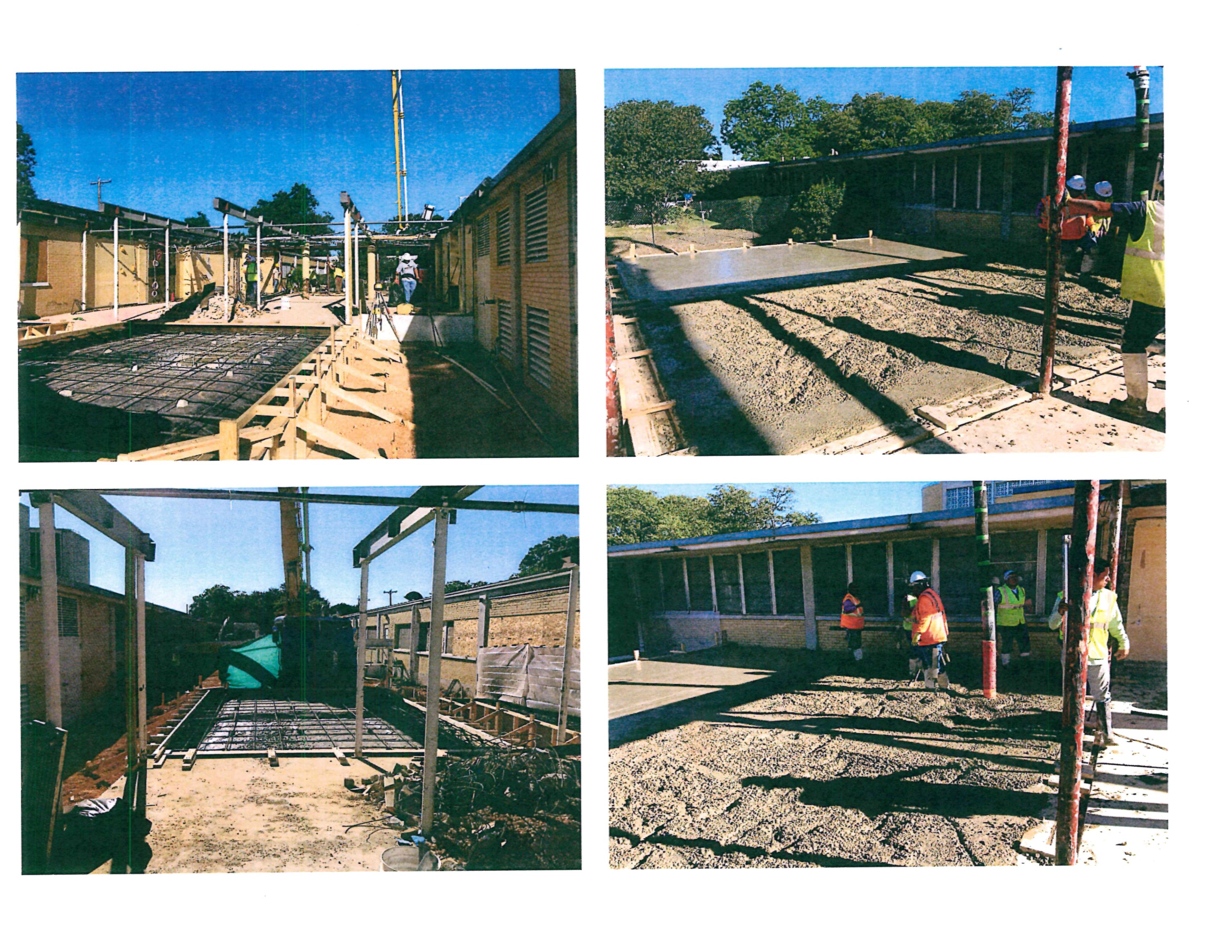 McCullough Hall Solarium Expansion and shower room renovations are moving forward. This past Friday the slabs were poured for the expansion of the Solarium on the east and west sides of the existing structure.