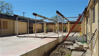 Expansion and renovation of McCullough Hall Nursing Center continues to move forward. To date, Hansco has provided demolition work and site excavation. The roof and ceiling were removed from the Solarium. Entrances to McCullough Hall and Regan Hall were sealed with soundproof material and blocked from use making a substantial detour to enter McCullough Hall. All the windows facing east have been removed and a hole into the Catio to the west was punched open. Tractors and excavation equipment will be able to move from 24th through to the Catio area.