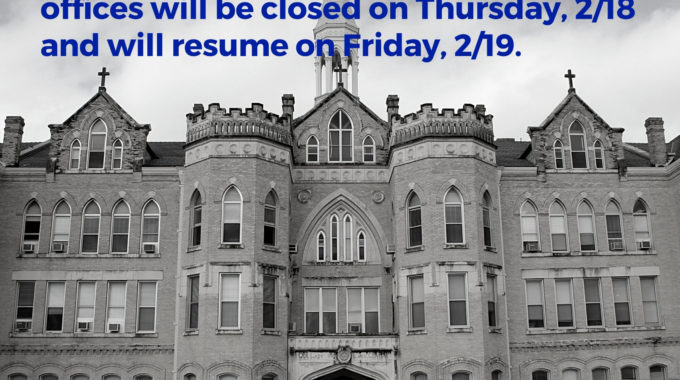 Due to inclement weather forecasted for Wednesday, February 17, Congregation of Divine Providence offices will be closed. Please click here for more information.